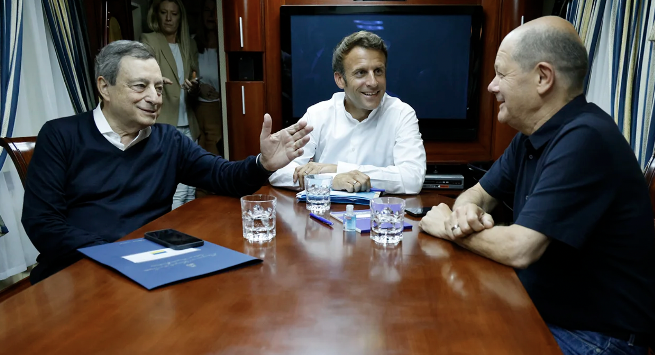 Канцлер ФРГ Олаф Шольц, Президент Франции Эммануэль Макрон и глава правительства Италии Марио Драги в четверг, 16 июня, посещают территорию Украины. Об этом информирует агентство РИА Новости со ссылкой на RaiNews24.