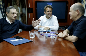 Канцлер ФРГ Олаф Шольц, Президент Франции Эммануэль Макрон и глава правительства Италии Марио Драги в четверг, 16 июня, посещают